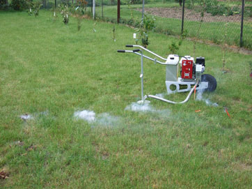 Durch eine schnelle Rauchverteilung wird der Sauerstoff aus dem Gangsystem gepresst. Die Wühlmäuse haben keine Chance zu entkommen. Innerhalb von Sekunden werden die Atemwege gelähmt. Dies führt zu einem raschen und schmerzlosen Tod.